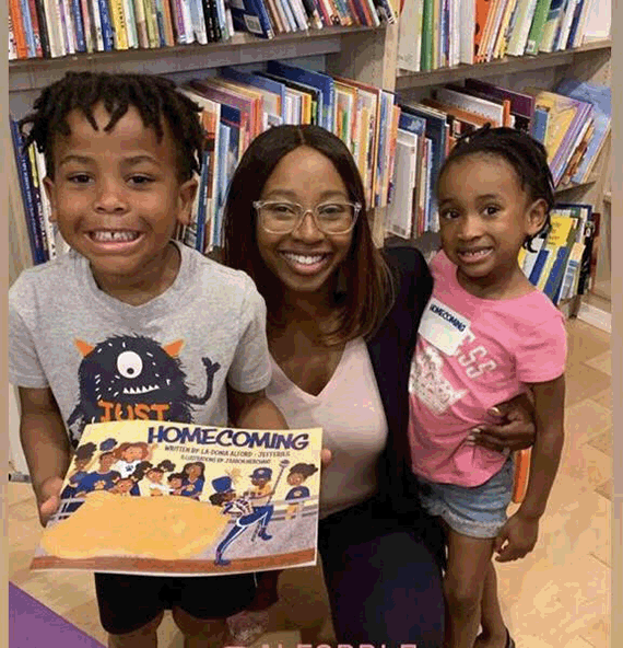 | North Carolina A&T State University graduate La-Donia Jefferies, center, wrote “Homecoming” to expose children to the pageantry of historically black colleges. |