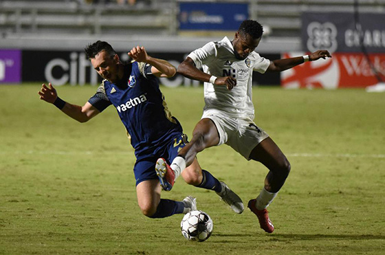| Charlotte Independence striker Dane Kelly (right) made his season debut last week in the Jacks' 2-1 loss to Miami. |