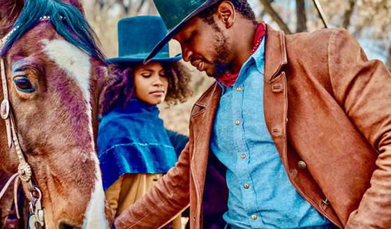 | Zazie Beetz and Jonathan Majors in "The Harder They Fall," which can be streamed on Netflix. |