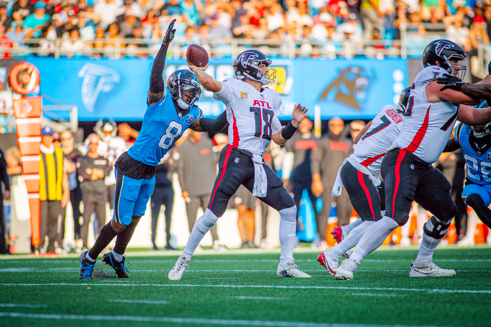 • After the Panthers' pass rush posted an NFL-low 16.2% pressure rate last season, Morgan added Jones to a reported two-year, $20 million deal. At 6-4, 264, the 26-year-old collected seven sacks and nine tackles for loss last season.
