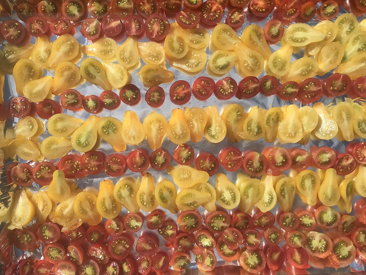 | Produce like these cherry pear tomatoes can be preserved long-term by canning. |