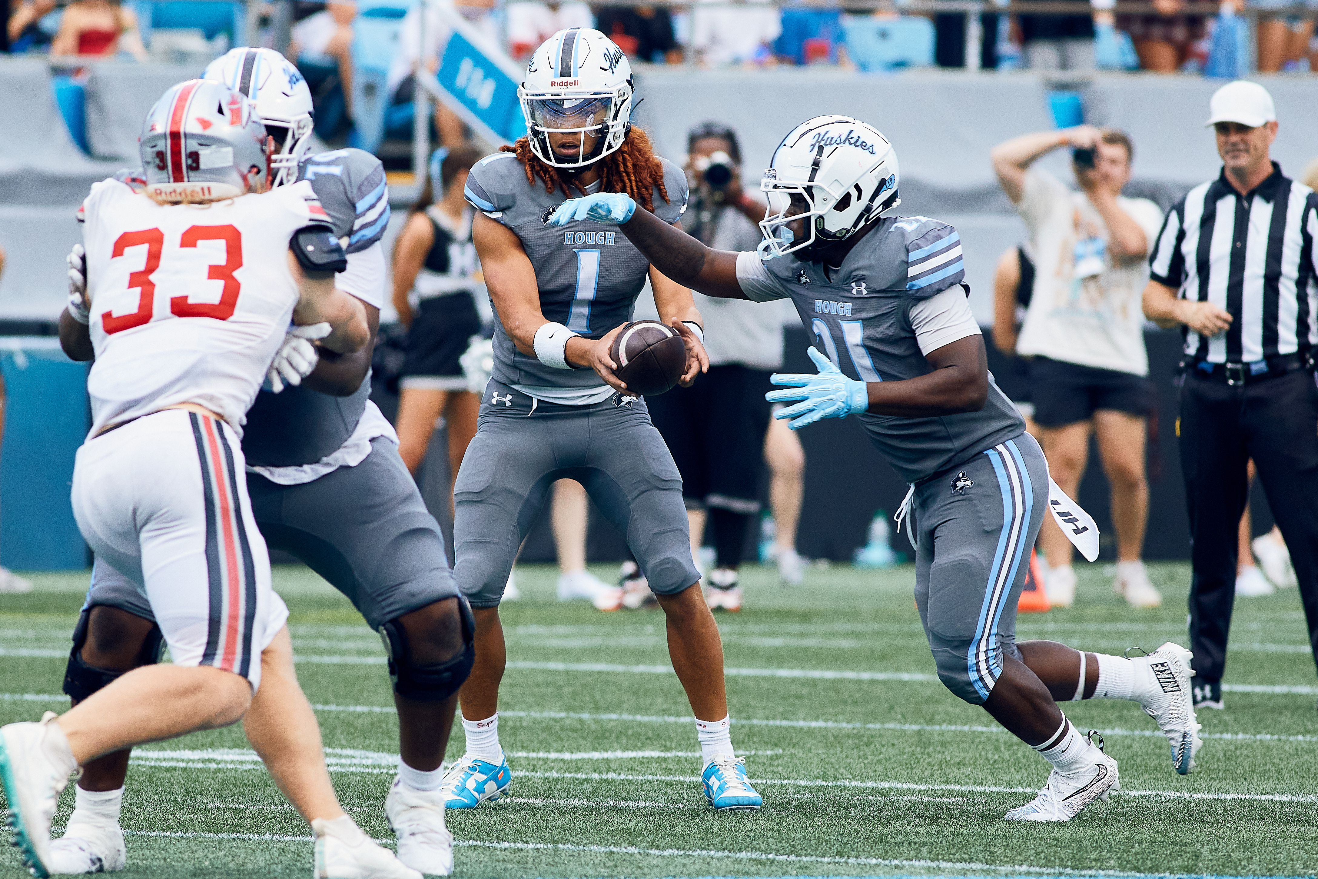 | Hough High quarterback Ethan Royal (1) has led the Huskies to a 12-0 record going into Friday’s 8A playoff game against West Charlotte. Hough is No. 1 in The Post's Magnificent Seven rankings. |