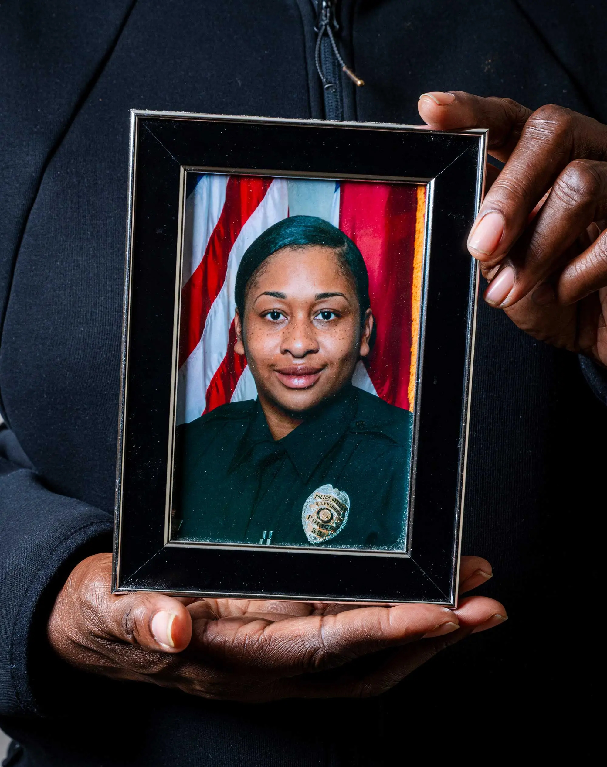 | Carolyn Graham holds a portrait of her daughter Ciji, who was a Greensboro police officer. |