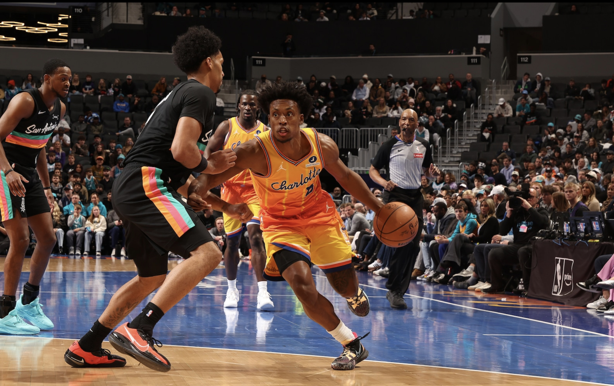 | Collin Sexton scored 21 points on 5-of-5 shooting from three-point range in the Charlotte Hornets' 111-106 win against San Antonio Jan. 31, 2026 at Spectrum Center. The Hornets are on a six-game win streak, their longest since 2016. |